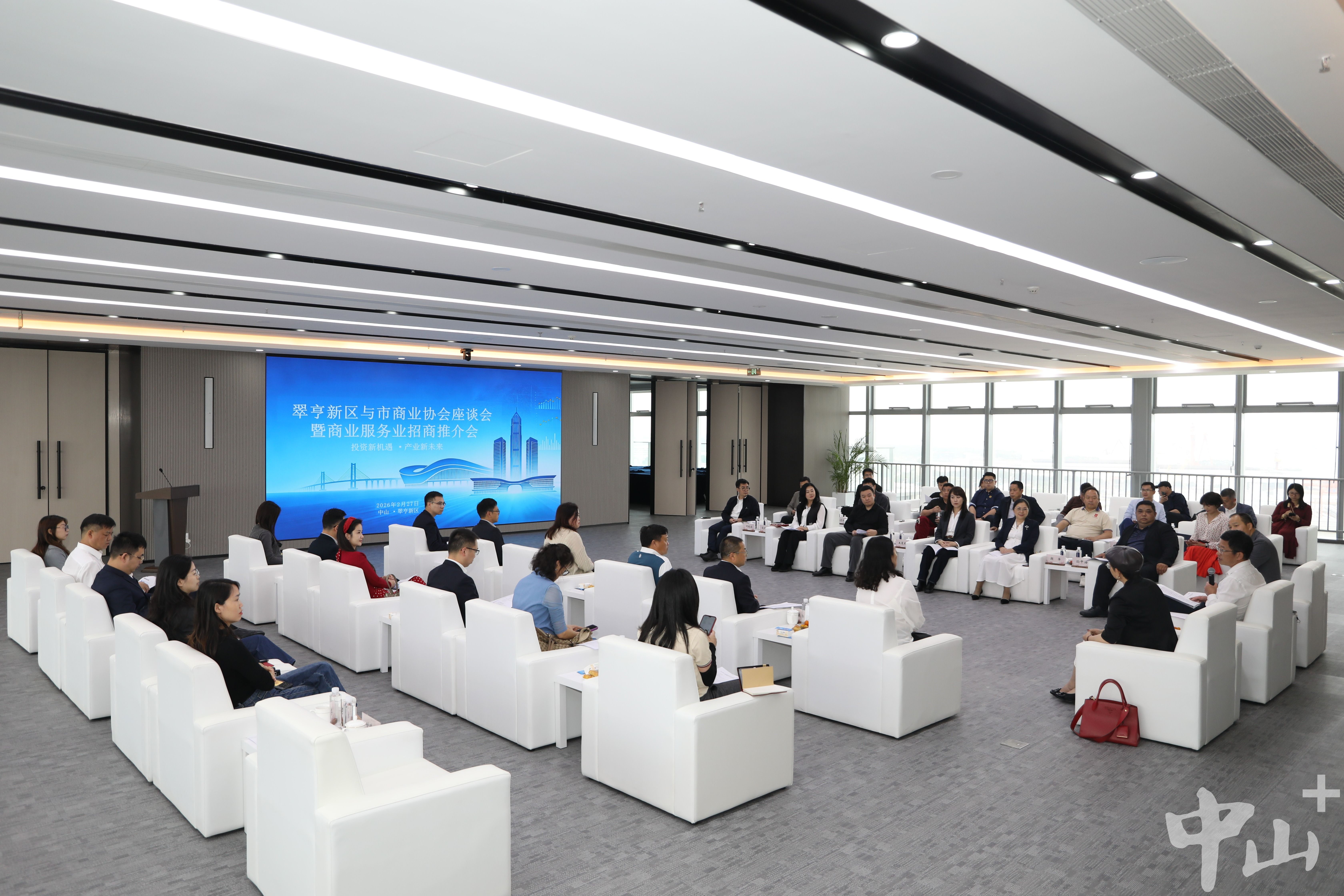 春潮涌動啟新程,商機盎然謀發(fā)展。2月27日下午,翠亨新區(qū)與市商業(yè)協(xié)會座談會暨商業(yè)服務(wù)業(yè)招商推介會在灣區(qū)未來科技城舉行。翠亨新區(qū)管委會、投資促進局、翠亨集團、西灣投控、深中高新產(chǎn)業(yè)園等相關(guān)部門負責人,與中山市商業(yè)協(xié)會30余位企業(yè)家代表齊聚一堂,以輕松務(wù)實、坦誠高效的交流方式,共商合作機遇、共繪商業(yè)服務(wù)業(yè)發(fā)展藍圖。