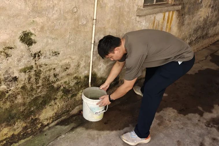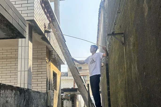 “阿姨,您家樓頂積了水,容易孳生蚊蟲,得趕緊清掉。我們現(xiàn)在先幫您疏通一下排水口?!?在南朗街道蚊媒傳染病防控一線,左步村網(wǎng)格員、退伍軍人嚴(yán)兆雄跟村民溝通后,爬上長(zhǎng)梯,用工具疏通天臺(tái)外墻排水口,讓積水迅速排走,從源頭阻斷蚊蟲孳生。