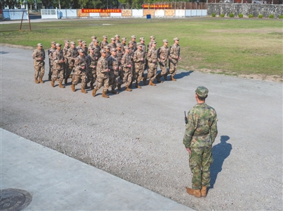 ▲隨著一次次的訓(xùn)練,新兵逐漸找到節(jié)奏。記者 張景天 攝