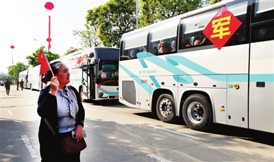 ▲家長(zhǎng)手舉國(guó)旗,一路目送孩子開啟新的軍旅生涯。 記者 文波 攝
