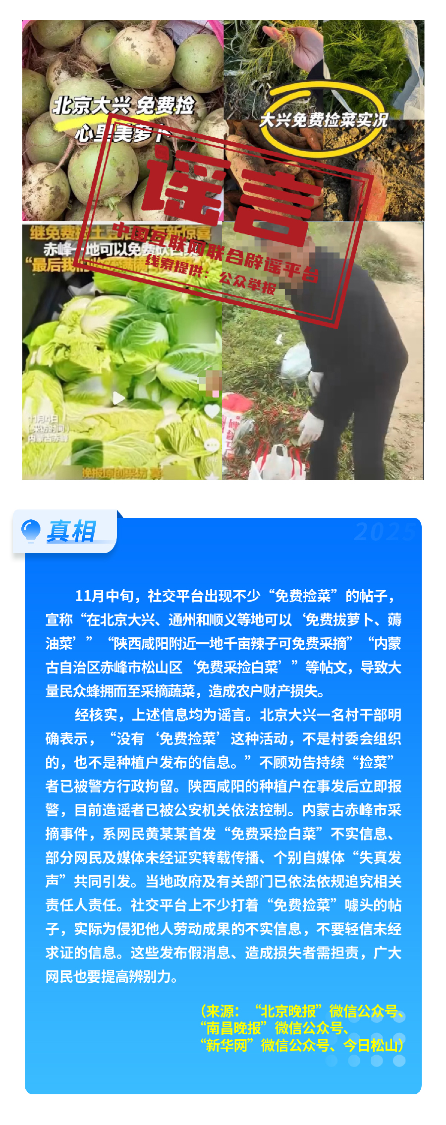 此外,“免費撿菜”傳言在多地蔓延,北京大興、內(nèi)蒙古赤峰、陜西咸陽等地,均有群眾因不實信息誤導(dǎo)涌入農(nóng)田哄搶,導(dǎo)致農(nóng)戶財產(chǎn)受損;“充‘劣質(zhì)電’會導(dǎo)致新能源汽車自燃”的說法,毫無科學(xué)依據(jù),實為造謠者為博流量惡搞。另有“高見觀潮”“象視汽車”“987瘋狂奶爸”等賬號在多平臺編發(fā)涉汽車行業(yè)的虛假信息,惡意抹黑詆毀汽車企業(yè)、汽車產(chǎn)品,損害汽車行業(yè)發(fā)展形象。